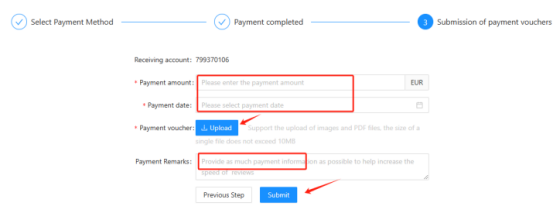 ④ After the recharge is completed, the back-end finance department will usually review the payment information. Confirmation will only be made after the bank actually receives the funds. Due to different customer transfer banks, it normally takes 3-5 business days, and occasionally 5-10 business days. After our finance department confirms that everything is correct, the funds will generally be credited to the system within 1 business day.